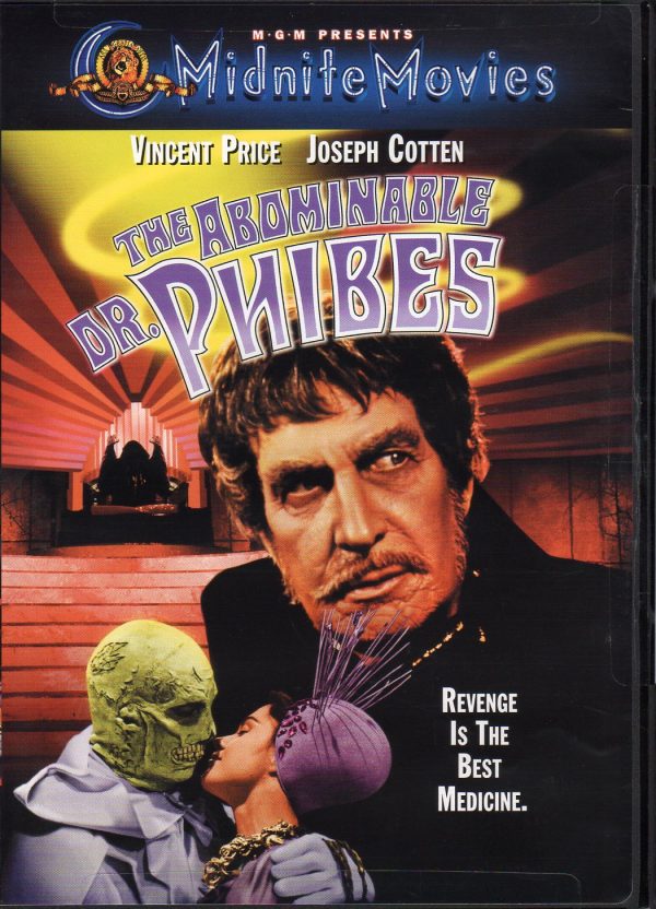 This unusually beautiful horror classic features Vincent Price in the title role of Dr. Anton Phibes, a genius who specializes in organ music, theology, and concocting bizarre deaths for anyone who wrongs him. Discovering why is half the fun, so for now let’s just say that Phibes is a little mad and very, very angry. With his assistant, the lovely, silent Vulnavia, Phibes begins cutting a gory swath through London’s medical community, with the dogged Inspector Trout hot on his tail. Phibes contains many pleasures–exquisite art direction and a dark sense of humor among them–but the real treat is in watching an old pro like Price at work. Whether he’s playing his organ, staring down a victim, or drinking through his neck, Price is at the top of his game. He mixes dark menace with wry comic touches, revealing both Phibes’s maniacal obsession and offhanded confidence in his own genius. Settle in for an evening of elegant gore and if an attractive, mute deliverywoman comes to the door, whatever you do–don’t answer!