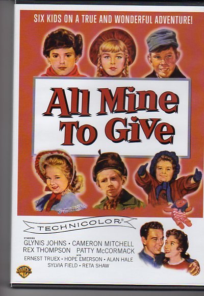 All Mine to Give (1957): Cameron Mitchell and Glynis Johns in a "fact-based" story about husband and wife Scottish immigrants who settle in Wisconsin in the1850s. The kids soon start popping out–six of them, in fact. But we know hard times are coming too, and sure enough, when double-barreled tragedy strikes, the eldest of the children, who’s all of 12, must find new homes for himself and his siblings–on Christmas Day! Yes, it’s unabashedly manipulative, but if this doesn’t get you, you should immediately change your name to Scrooge.