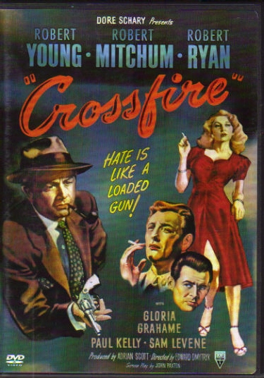 Years of police work have taught Detective Finlay that where there’s crime, there’s motive. But he finds no usual motive when investigating the beating death of a man. The man was killed because he was a Jew. "Hate," Finlay says, "is like a gun." Robert Young portrays Finlay, Robert Mitchum is a laconic army sergeant assisting in the investigation of G.I. suspects and Robert Ryan plays a vicious bigot in a landmark Film Noir nominated for five Academy Awards including Best Picture. Edward Dmytryk (Murder My Sweet) directs, draping the genre’s stylistic backdrops and flourishes around a topic rarely before explored in films: anti-Semitism in the U.S. Here, Hollywood took aim at injustice and caught bigotry in a Crossfire.