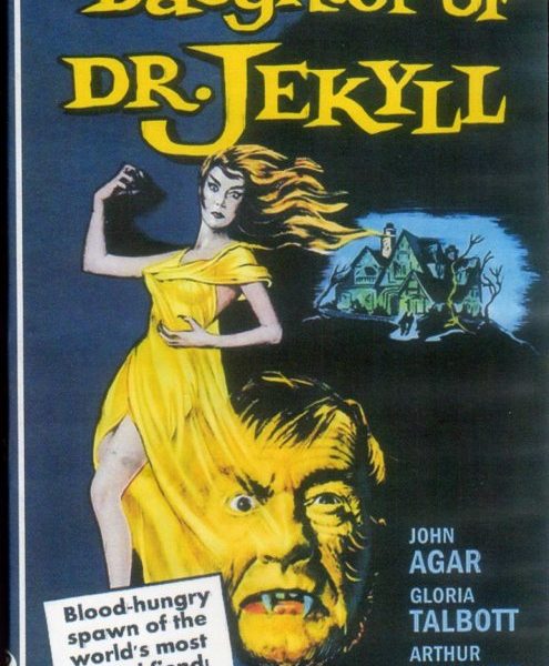 Edgar G. Ulmer directed this silly but fun low-budgeter about young English heiress and bride-to-be Janet (Gloria Talbott), who arrives at the family estate on her 21st birthday. There she is informed by her guardian that her father was none other than the notorious Dr. Henry Jekyll, the inventor of a formula which transformed him into an ill-mannered, murderous beast. As unpleasant as that prospect may be, there’s an even greater concern: the doc’s condition may be hereditary. This news so mortifies Janet that she calls off her wedding, much to the chagrin of her fiancee (John Agar, no stranger to chagrin), who finds the whole idea ludicrous. Ludicrous maybe, but after a horrible nightmare in which Janet transforms into a monster, she awakens to find herself covered in blood — and the maid has been torn to shreds.