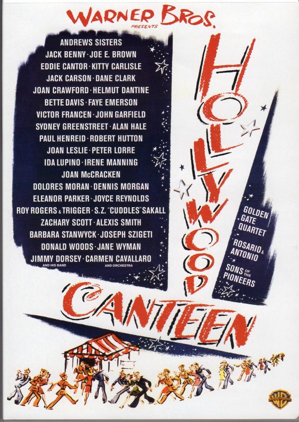 The Hollywood Canteen was a club for GIs where Joan Crawford might over- easy you some eggs and John Garfield might scrub out the frying pan. The movie Hollywood Canteen is a snappy, starry salute to that World War II landmark, built around a storyline involving a corporal who wins a date with winsome Joan Leslie. At ease, soldiers, as real-life canteen co-founders Bette Davis and Garfield plus dozens more luminaries – from Jack Benny to Barbara Stanwyck to Roy Rogers and Trigger – dazzle the troops and modern fans in "a great big scrambled vaudeville show with enough talent to have made a dozen fine movies"