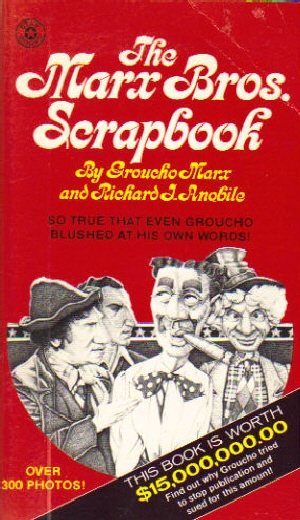 In his second book on the Marx Brothers (the first being 1971’s "Why A Duck?") Richard J. Anobile conducted lengthy interviews with Groucho, Gummo, Zeppo, Harpo’s widow Susan, and Jack Benny, among others. Most of the book is Groucho speaking, and his recollections are fascinating and brutally honest. Frequently the eighty-two-year old comedy giant lashes out at the twenty-six-year old Anobile: "Fifty years ago! How the hell am I supposed to remember what I did fifty years ago?" Gummo is pleasant and cooperative, more so than Zeppo, who was no doubt squirming about that card game that was getting away. Susan Marx is blunt about Groucho’s caustic tongue and Chico’s gambling. Groucho’s four-letter words, which are in abundance, found their way into the final print and Groucho sued for $15,000,000.00 to stop publication. This was settled in Anobile’s favor as Groucho signed all the releases. Steve Stoliar, a college student who worked for Groucho and helped get "Animal Crackers" re-released, says he doesn’t doubt Groucho used that language, but never thought that Anobile would include it. Son Arthur Marx attributed it to his father’s advanced age. This can’t be recommended enough for Marx Brothers fans; it’s a treasure trove of information, tidbits, and gossip.