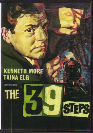 Starring: Kenneth More, Brenda De Banzie, Taina Elg, Faith Brook Directed by: Ralph Thomas This is the definitive version of one of the most famous thrillers in the English language, John Buchanan’s "THE 39 STEPS". When Richard Hannay (KENNETH MORE) picks up a baby’s rattle in Kensington Gardens, he unwittingly sparks a fuse that leads to espionage, intrigue and murder. What is the key to the dying woman’s last words – "The 39 Steps"? Who is the mysterious brain at the head of the deadly spy organisation that theatens the very heart of British security? "THE 39 STEPS" is a thriller that never loosens its grip and includes some of the most faous set pieces in British Cinema.