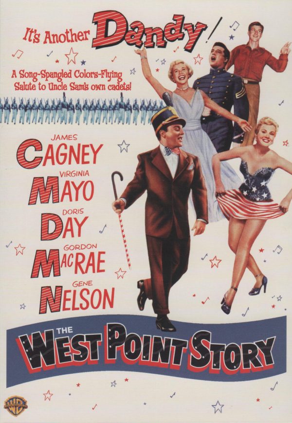 Set at West Point, this musical centers on Elwin Bixby’s (James Cagney) misadventures as he tries to stage a show at the academy while trying to lure the young talented soldier Tom Fletcher (Gordon MacRae) away from army life and into showbusiness. Convinced that Tom’s voice has star potential, Bixby uses pretty movie star Jan Wilson (Doris Day) as bait to try and charm Tom out of army life. But plans backfire when Jan falls under the spell of the handsome soldier.Tons of singing and dancing by Gordon MacRae, Doris Day, Gene Nelson, James Cagney, and Virginia Mayo.